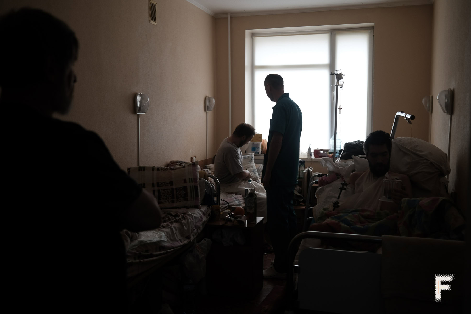 Десь через пару тижнів після першої операції я попросив друзів принести мені фотоапарат. Він довго стояв на шухлядці, поки я не відчув, що можу знову взяти його до рук. Моєю зоною зйомки став лікарняний коридор у 20 метрів – це була максимальна відстань, яку я міг подолати на милицях. Знімати було важко. Спочатку не фізично, а емоційно. Начебто камера була мостом назад у звичний світ, але я ще не був готовий перетнути його. Потім, коли я все ж почав знімати, відстань між мною і реальністю поступово скорочувалася.