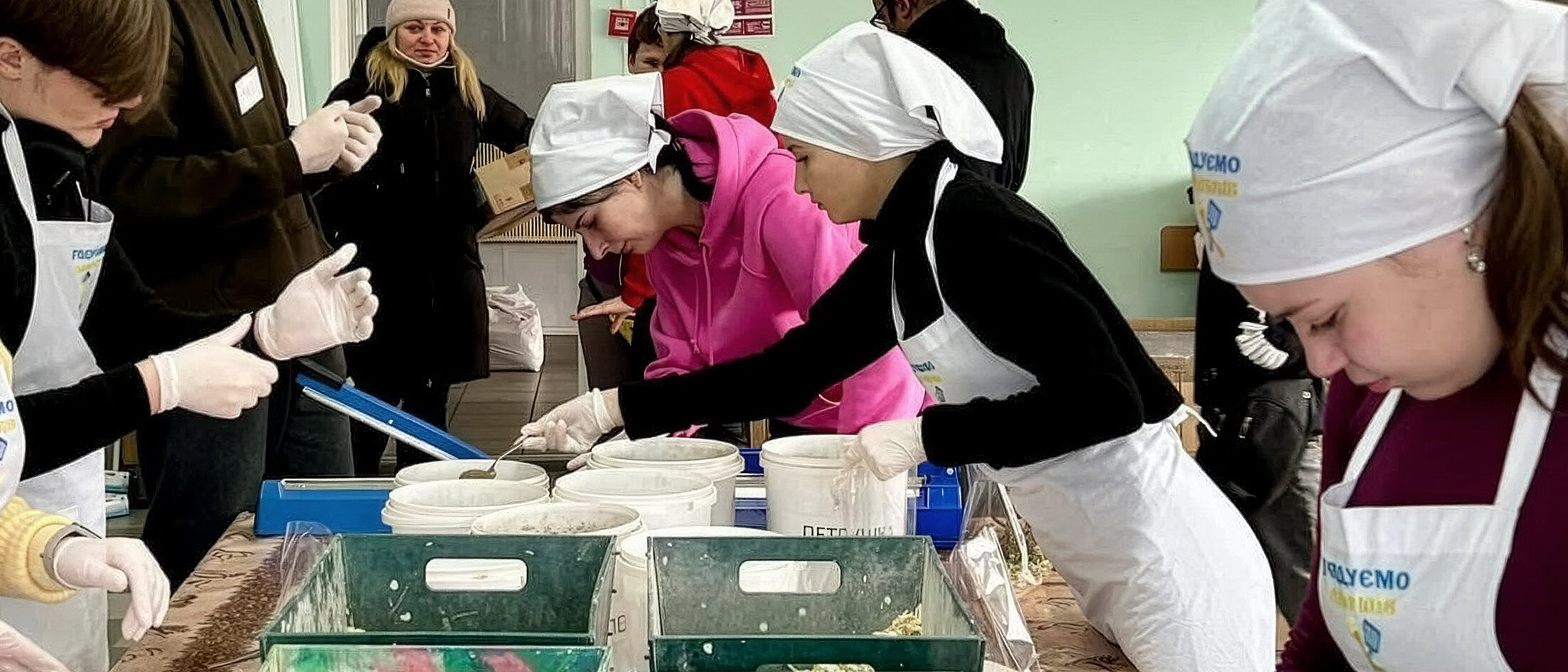 На другий тиждень після вторгнення пішла допомагати місцевим волонтерам. Я надягла білу хустку, фартух, рукавички та стала сушити овочі і зелень для сухих супів і борщів. Їх відправляли військовим і жителям областей, де через бойові дії люди змушені були готувати їжу на вогнищах. Таких, як я, було понад 300. У 2023 році працівники навчально-реабілітаційного центру приготували для військових 12 тонн вареників і понад 11,5 тисяч пиріжків. Харчів бійцям вистачало, але для містян це стало способом об’єднатися і трохи відволіктися від новин.